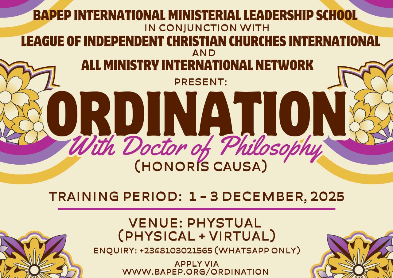 You are welcome to BAPEP International Ministerial Leadership School. BAPEP International Ministerial Leadership School in conjunction with League of Independent Christian Churches International (LICCI) and All Ministry International Network are working towards certifying ministers of God to be relevant and upgrade their titles towards global recognition and acceptability.